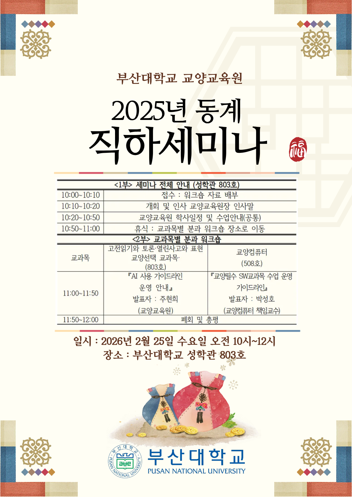 2025학년도 동계 교양교육원 교양교과목 직하세미나를 아래와 같이 개최하오니,